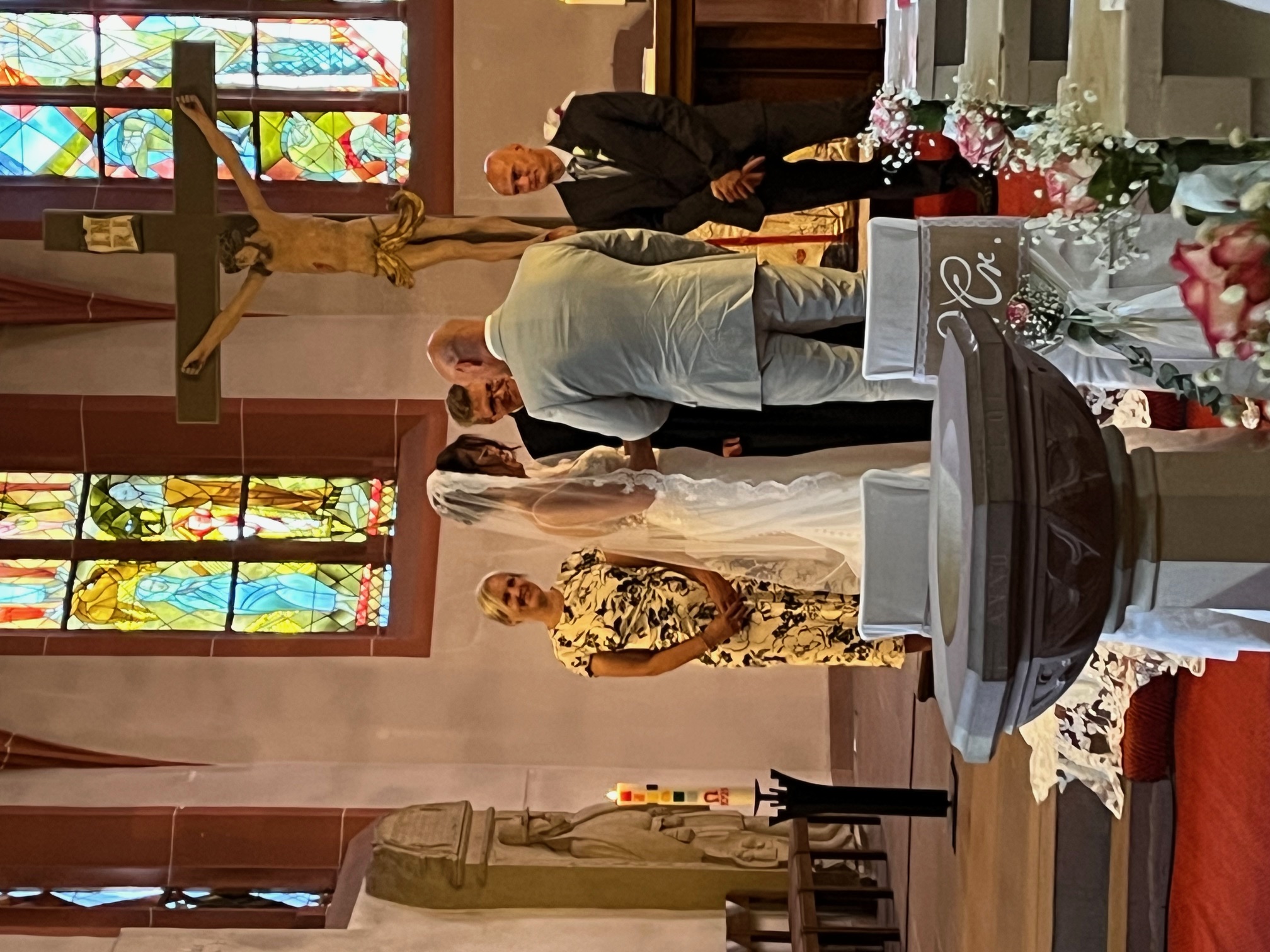 Bei Kaiserwetter gaben sich Sandra und Christian am 14.06.2025 in der evangelischen Kirche in Knielingen das Ja-Wort. Einige Aquarianer/innen standen nach der Trauung vor der Kirche Spalier und begleiteten die ersten Schritte ins Eheleben mit klappernden ´Flossen`-Schlägen.
